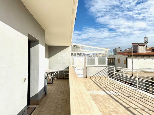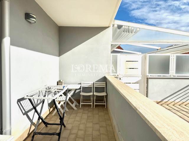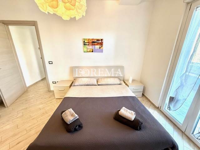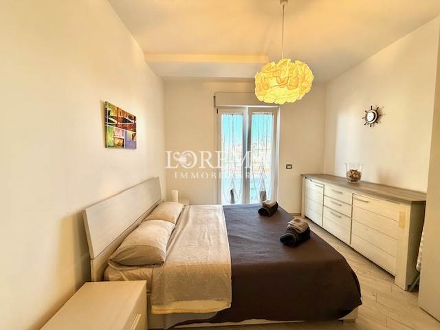 L’immobile composto da Soggiorno di 24 Mq.ca. con angolo cottura (fornelli a gas, forno a conduzione elettrica), corridoio, 1 camera matrimoniale di 17 Mq.ca. con porta finestra che porta al terrazzo quindi molto luminosa, 1 bagno con box doccia e finestra, 1 terrazzo vivibile con esposizione ad Ovest vista mare, 1 altro terrazzo vivibile da dove si accede con esposizione a Sud/Est.