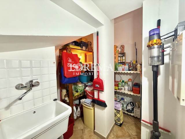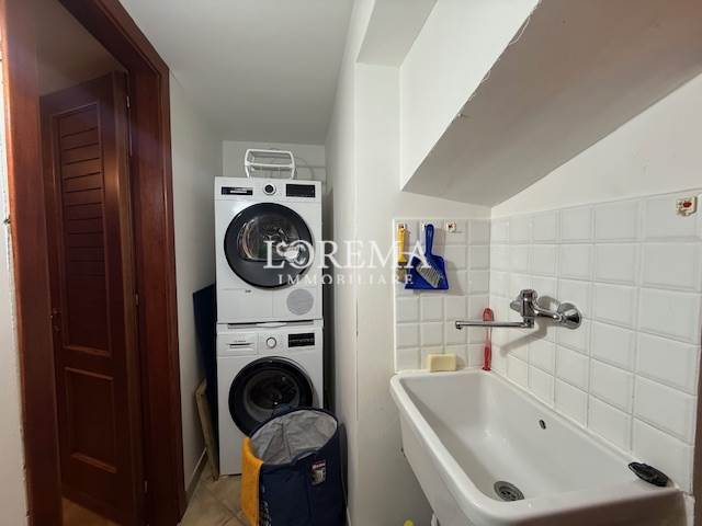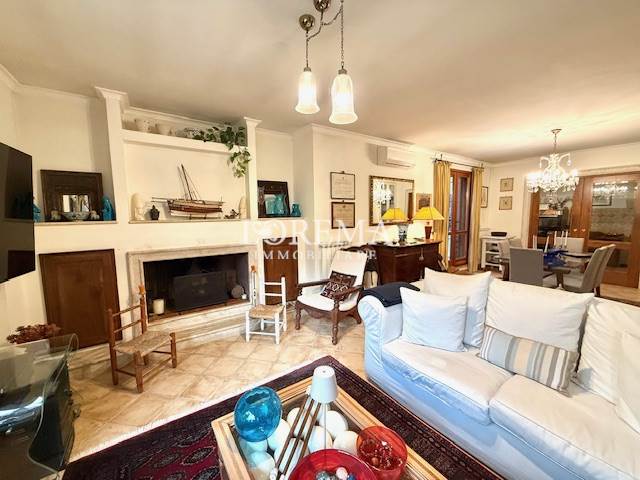 Piano inferiore di 70 mq.ca., composto da Salone triplo con camino (cornice in travertino) e arredi fissi, 1 cucina abitabile con lavastoviglie, 1 ripostiglio con lavanderia, 1 bagno di servizio con aeratore;