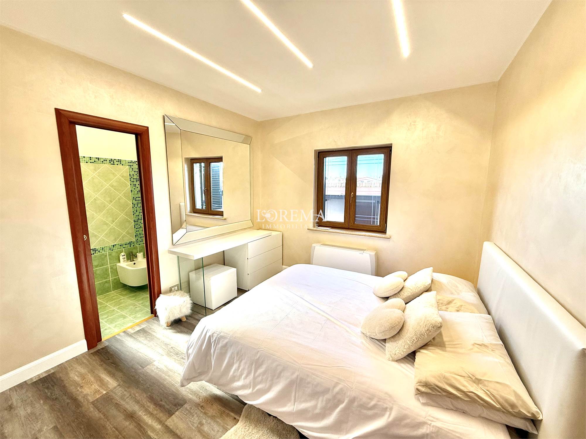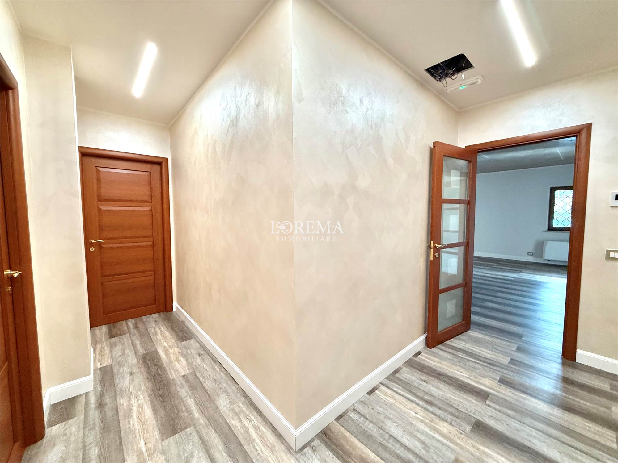 sala pranzo di 18 mq.ca, 1 camera di 10 mq.ca., corridoio angolare, 1 bagno di servizio, 1 camera matrimoniale di 10 mq.ca. con cabina armadio e bagno interno con doccia e finestra, 1 camera di 11 mq.ca. adibita a cabina armadio, 1 camera padronale matrimoniale di 15 mq.ca.