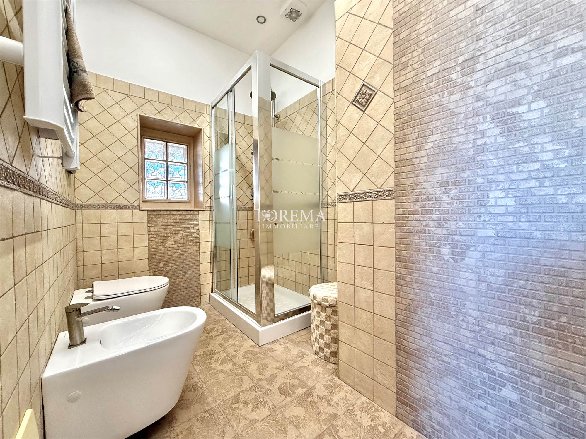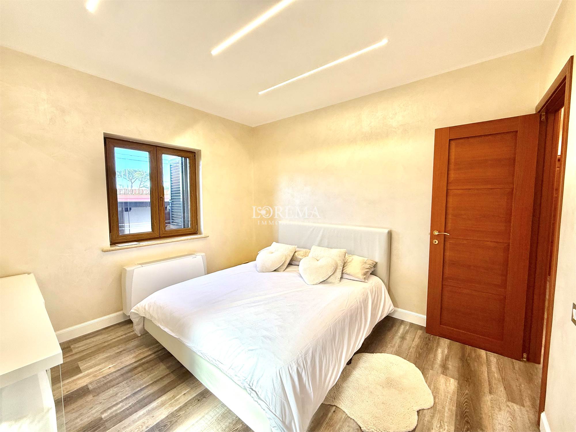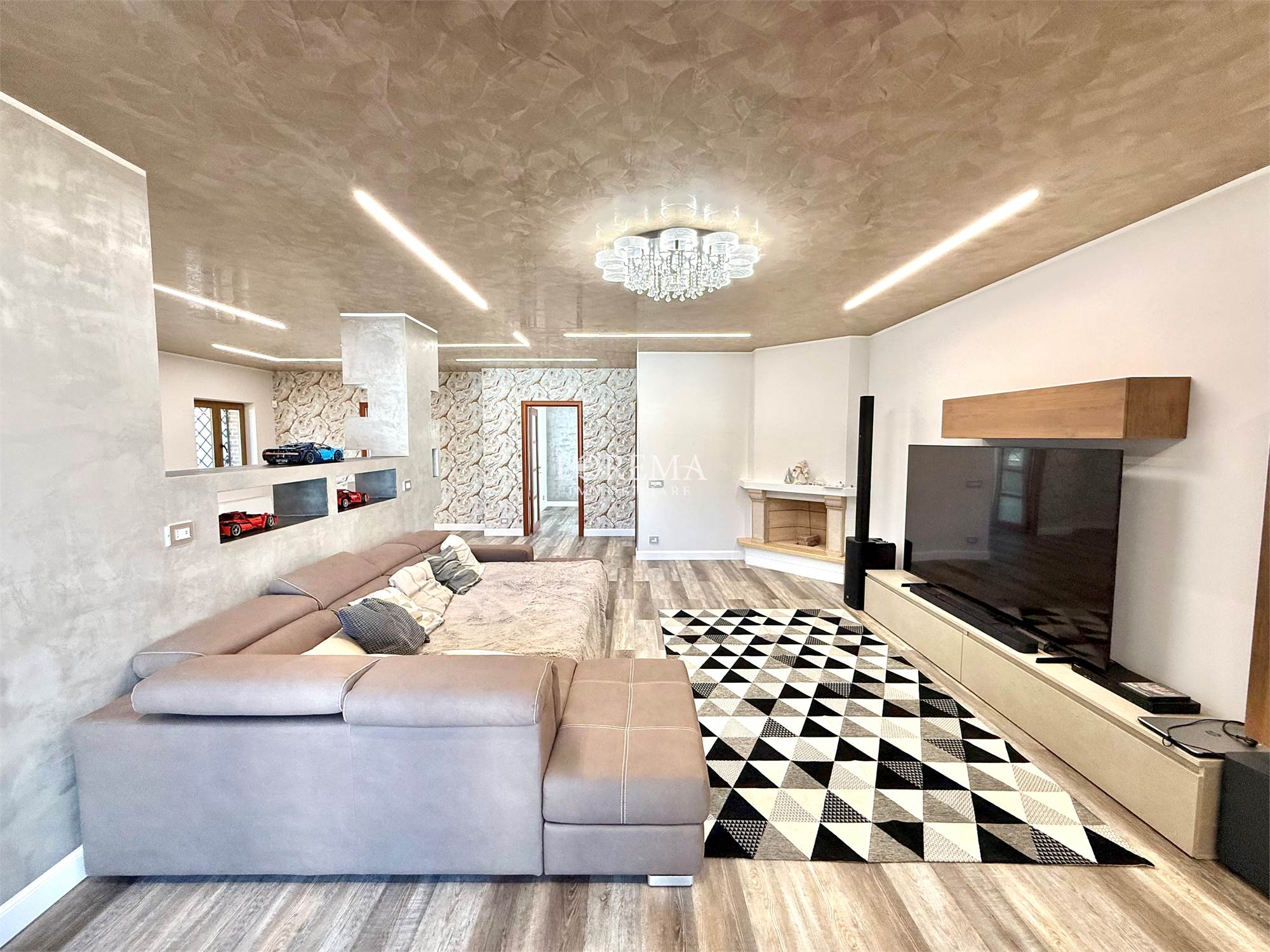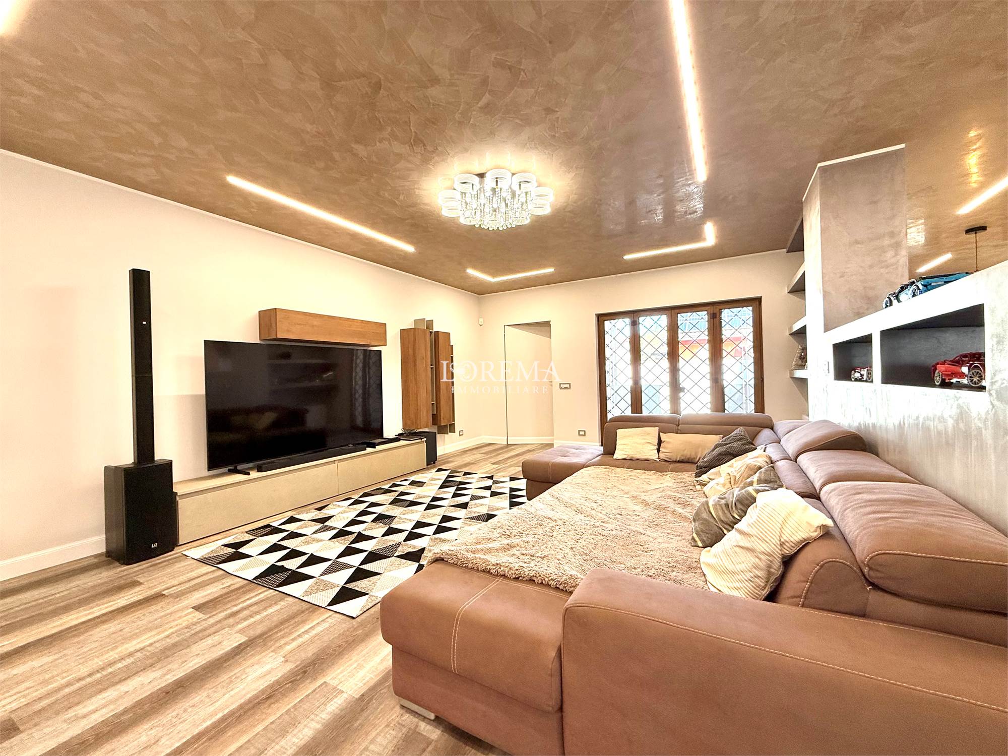 di 21 mq.ca, 1 camera di 12 mq.ca. con pompa di calore caldo/freddo, adibita a palestra con sauna e doccia, garage di 9,10 x 3,50 (31 mq.) e laboratorio con pompa di calore caldo/freddo, con serranda elettrica, quadro elettrico, Luci emergenza, intercapedine ispezionabile, Centrale elettrica.