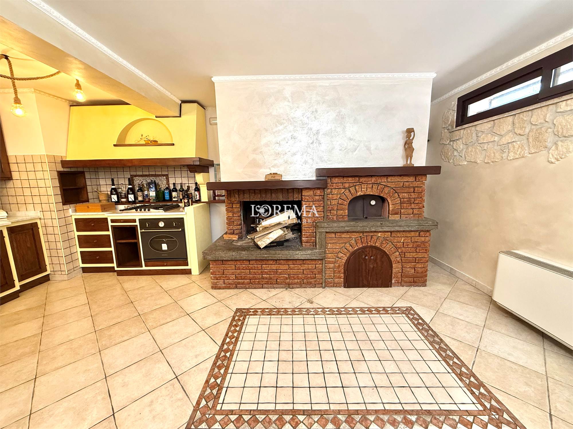 Piano Terra di 180 mq.ca. con grande Salone con controsoffitto e luci in led, altezza 2.73 con 35 cm. oltre, con cucina a vista e camino in marmo per un totale di 100 mq.ca.,