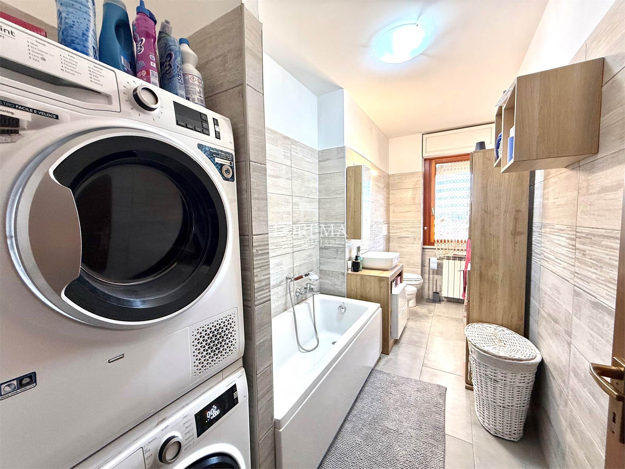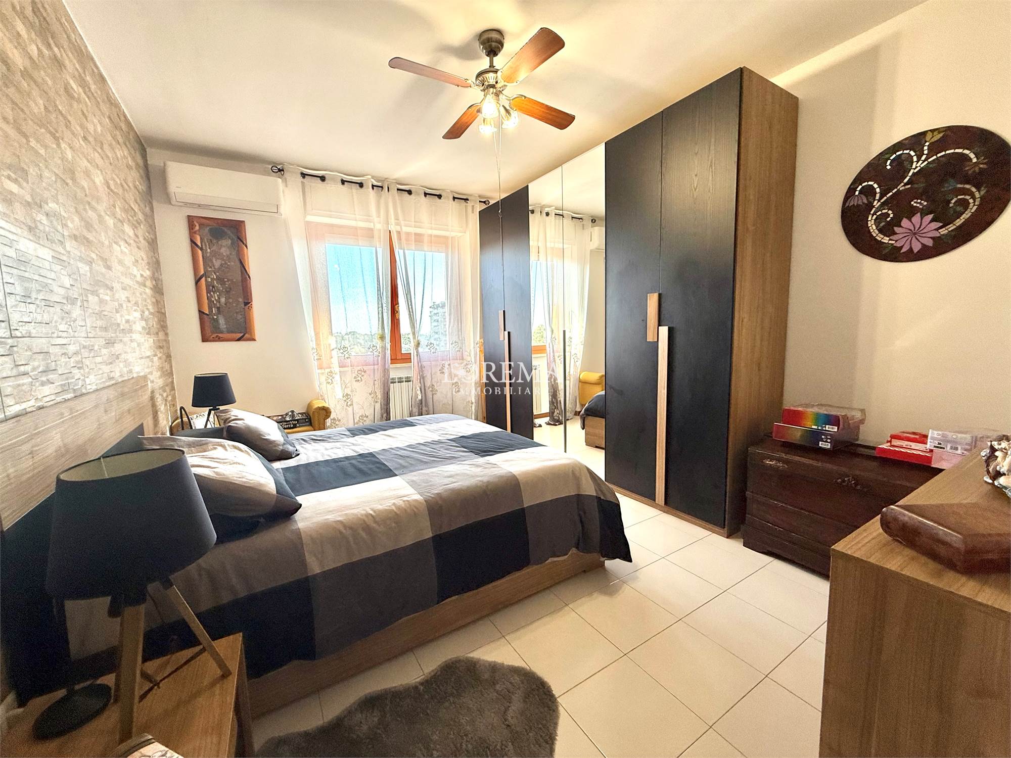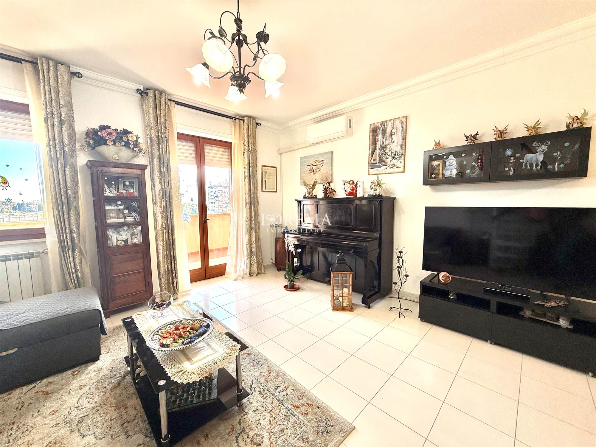 L'appartamento in ottimo stato, ristrutturato a ottobre 2024, dispone di Porta blindata, 2 pompe di calore caldo/freddo presenti nel salone e nella camera da letto matrimoniale grande marca Arya da 12.000 btu, infissi doppi vetri in legno, citofono, pavimenti in ceramica, riscaldamento autonomo con caldaia marca Ariston di Novembre 2024.