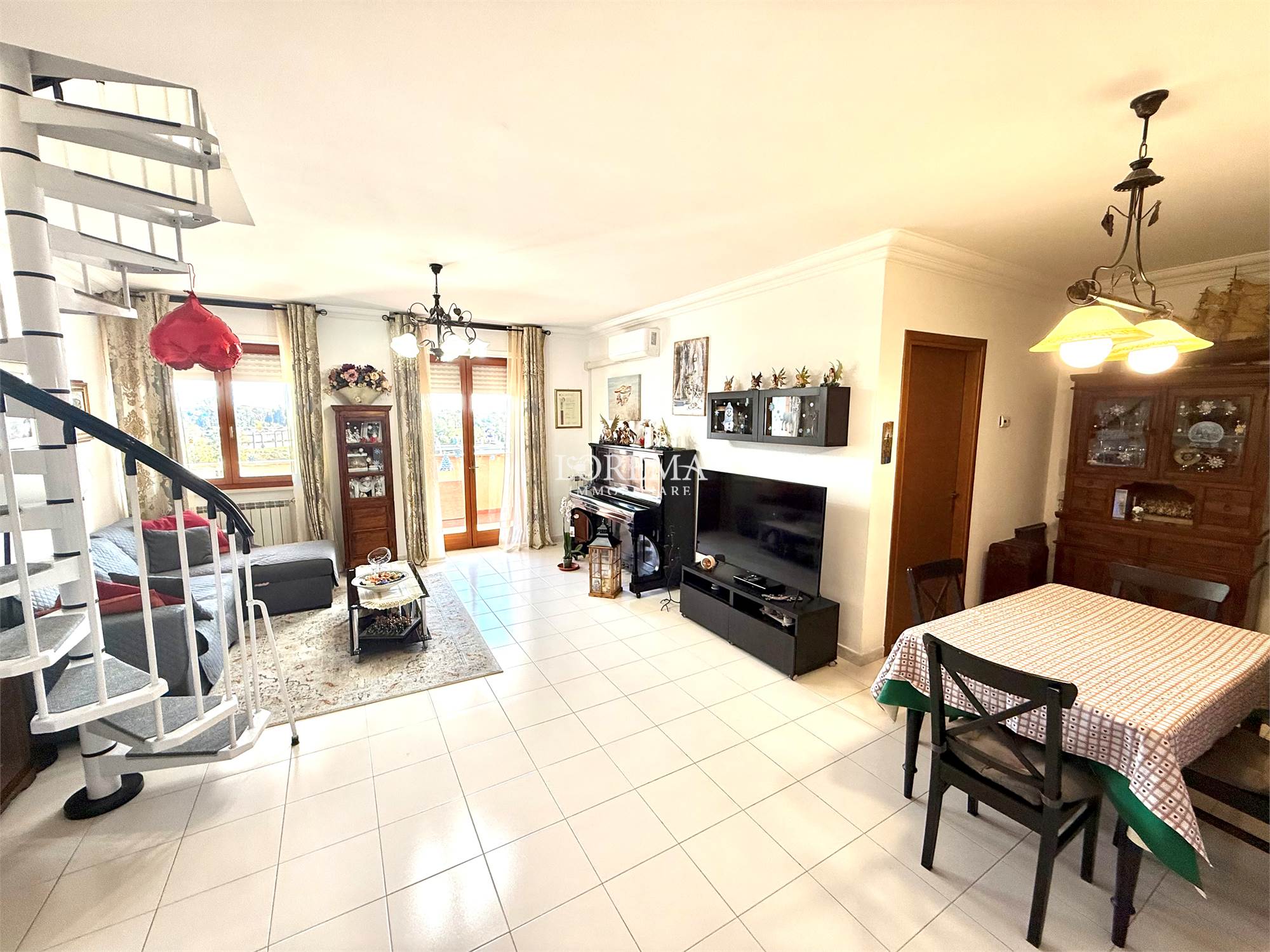 POMEZIA, precisamente in Via Federico Fellini, a due passi dal Parco della Sugherata, in posizione comoda, vicino a negozi (a 600 mt.), servizi e mezzi di trasporto (Cotral), proponiamo un Attico di 134 mq.ca. commerciali al piano 7° ed 8° ristrutturato a Ottobre 2024, con cantina di 4 mq.ca. e 1 posto auto di 13 mq.ca. situati al piano seminterrato, in edificio del _____________ , servizio di portineria con orario dalle 8.00 alle 16.00.